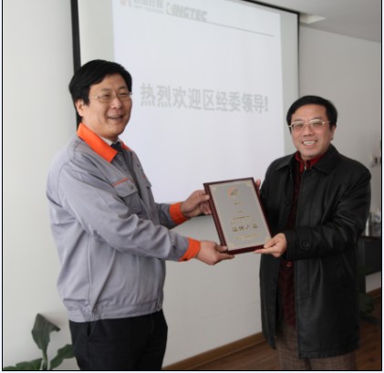 2014年7月23日泊頭工業(yè)區(qū)區(qū)經(jīng)委領(lǐng)導為泰邦ZYB渣油齒輪泵頒發(fā)被被推薦為2014年度品牌產(chǎn)品獎牌.圖為泰邦工程部經(jīng)理在區(qū)經(jīng)委領(lǐng)導手上接過獎牌.
